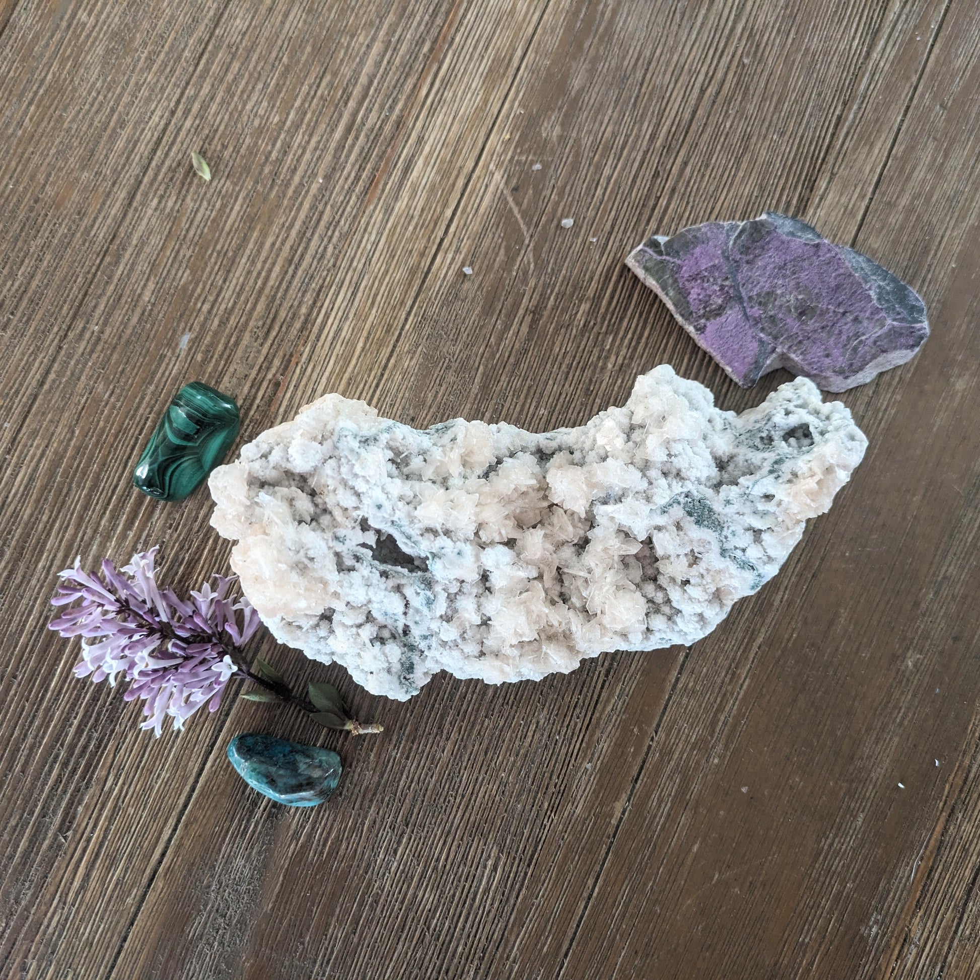 Apophyllite: Apophyllite carries a high vibration that opens one to all aspects of higher consciousness. Meditation with apophyllite allows one to see the interconnectedness of all beings. It is also useful in connecting with Guides and Angels.