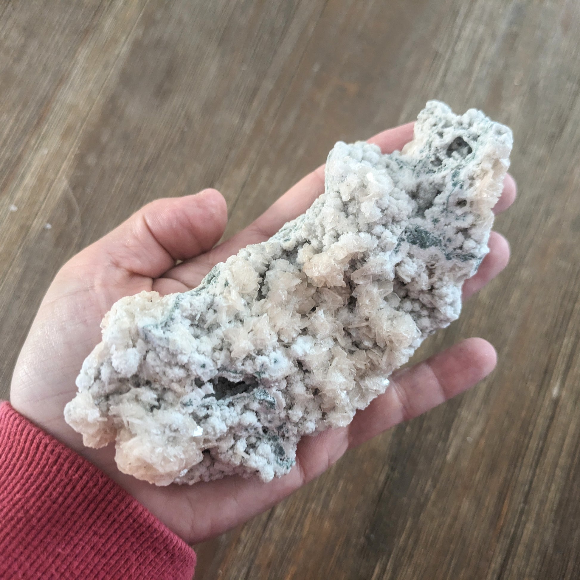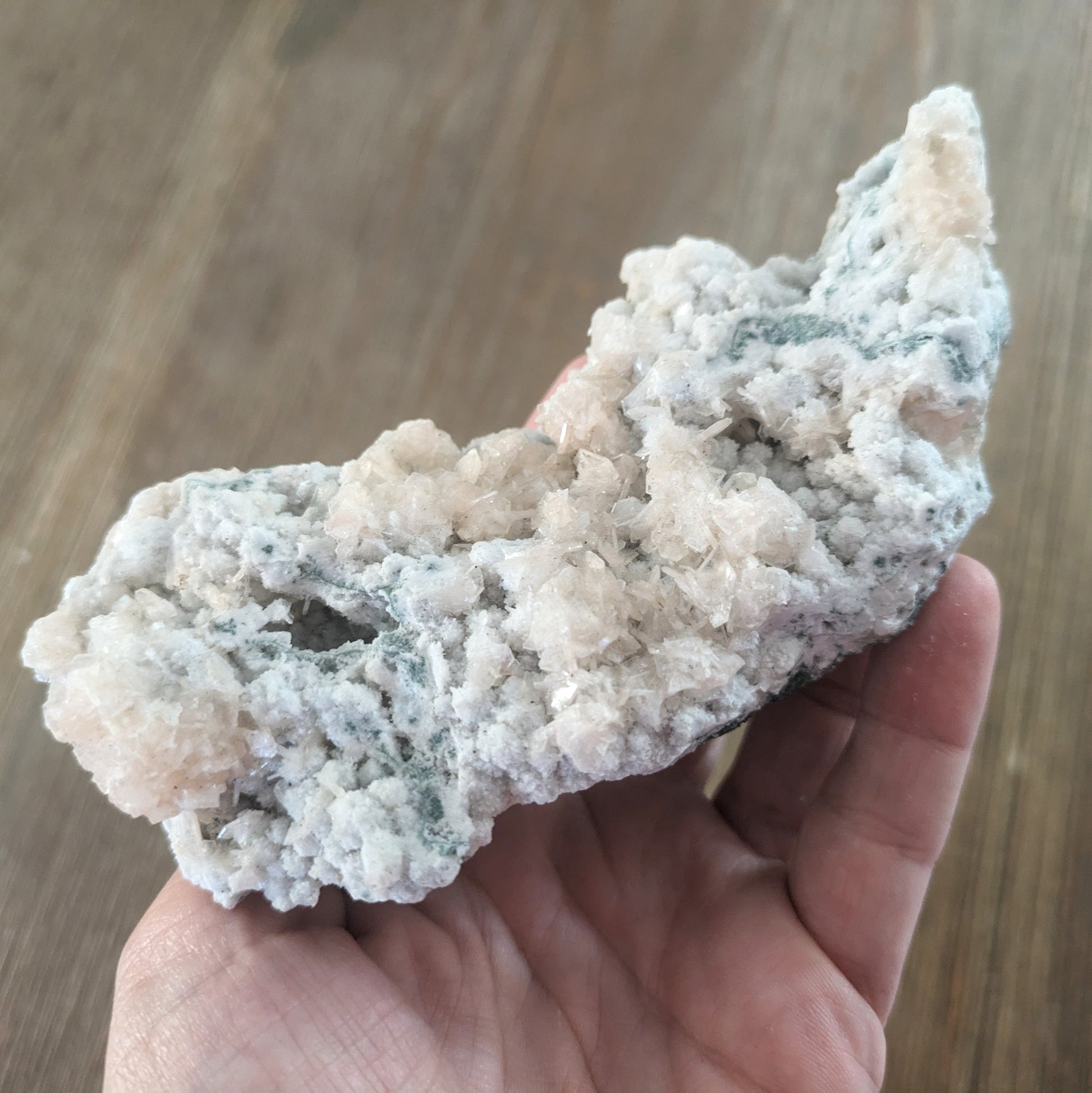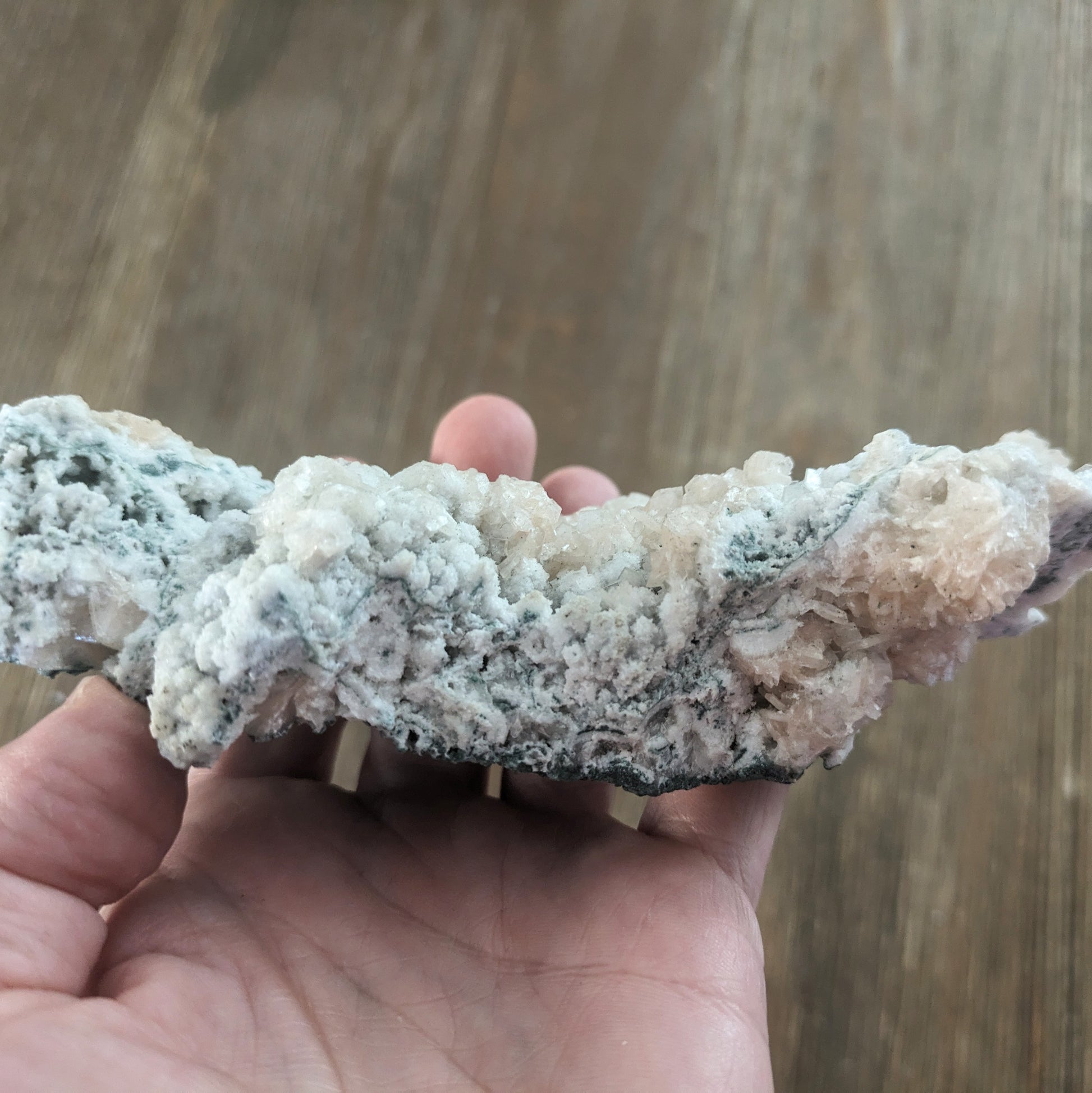 This geode is a conglomeration of small apophyllite and stilbite crystals. Lovely texture and color with lots of sparkle.
