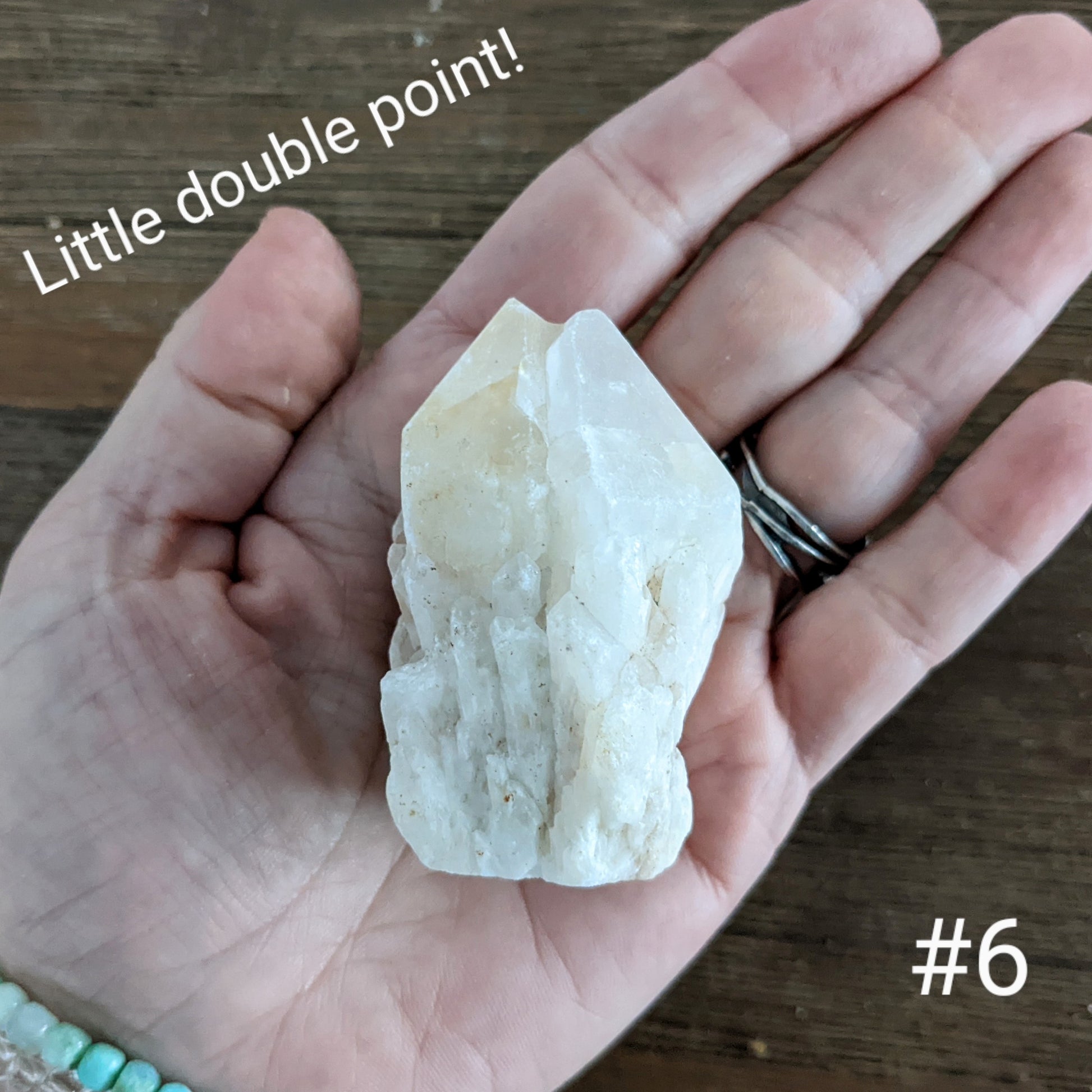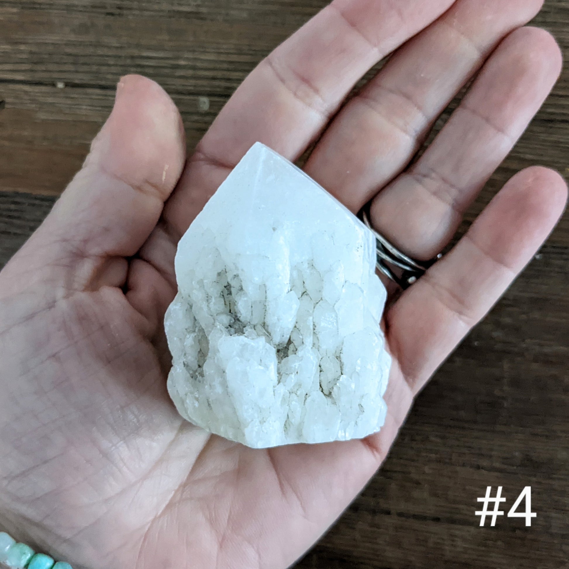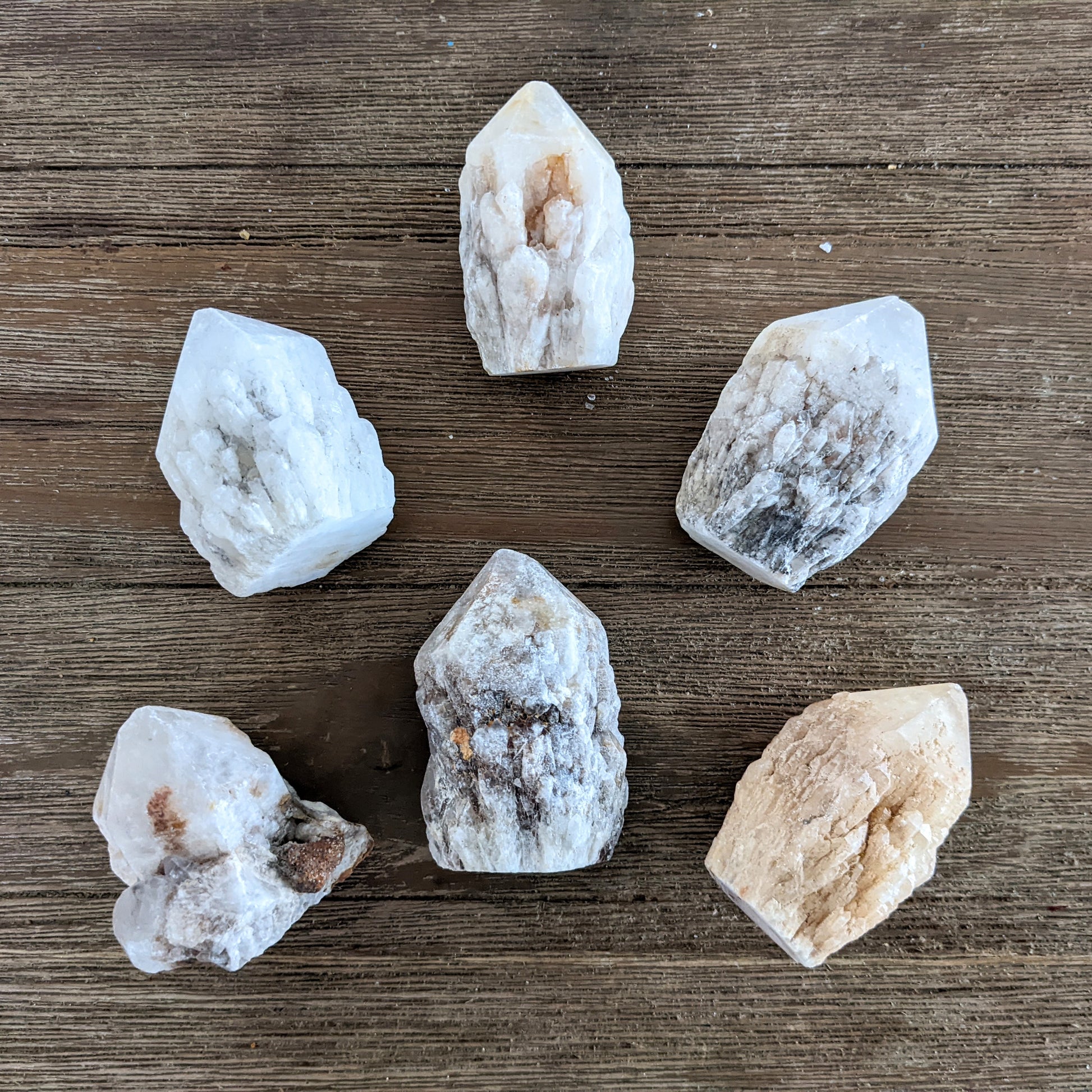 Cathedral quartz, also called candle quartz, is quartz that has smaller formations around the sides. It comes in a few different colors based on the minerals found nearby during formation.