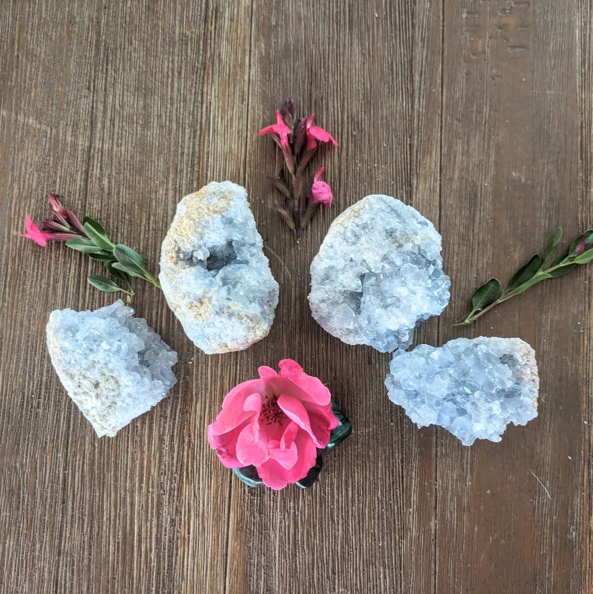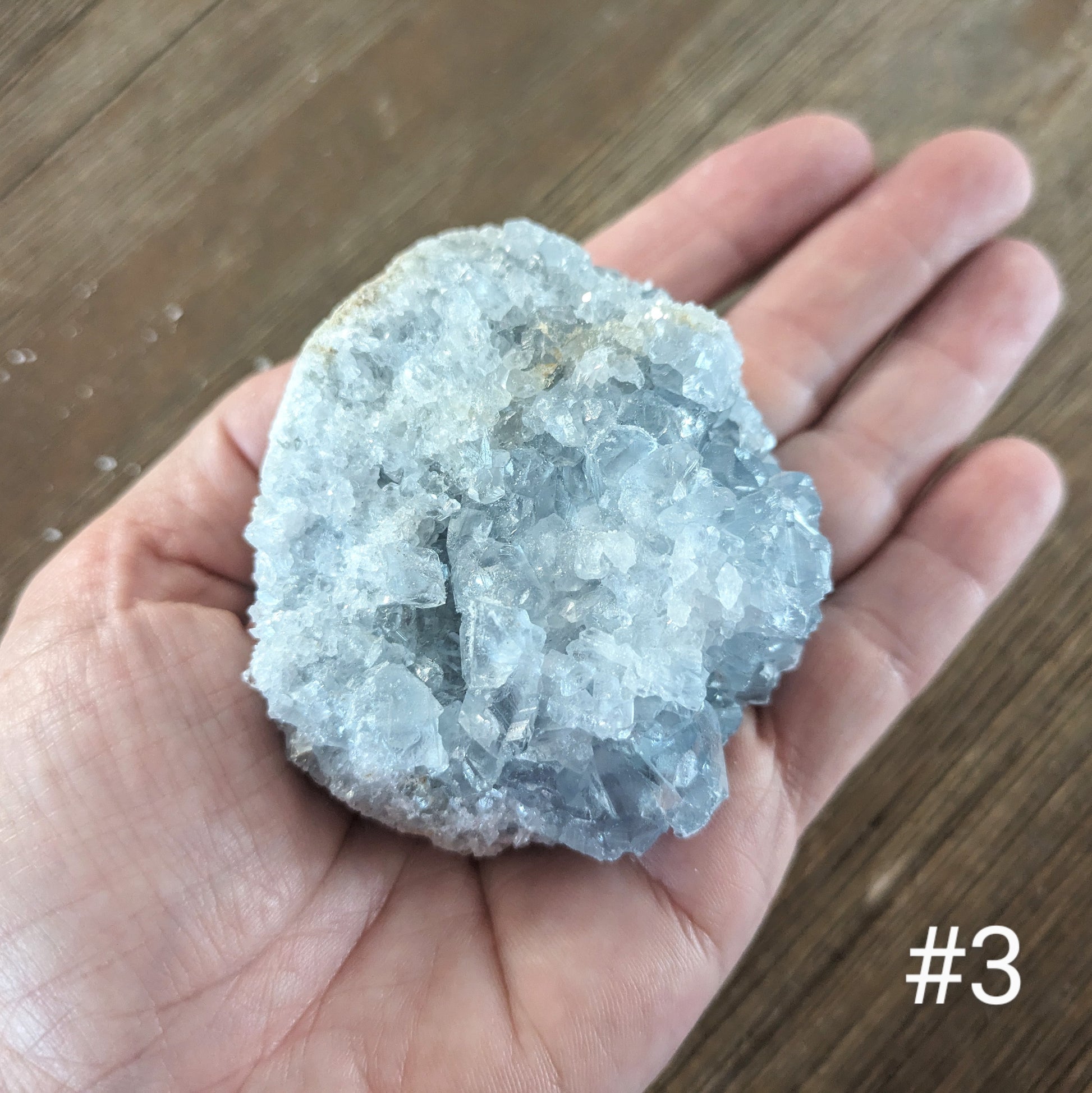 These lovely celestite geodes are small enough to fit in the palm but glorious enough to shift the energy of the room!