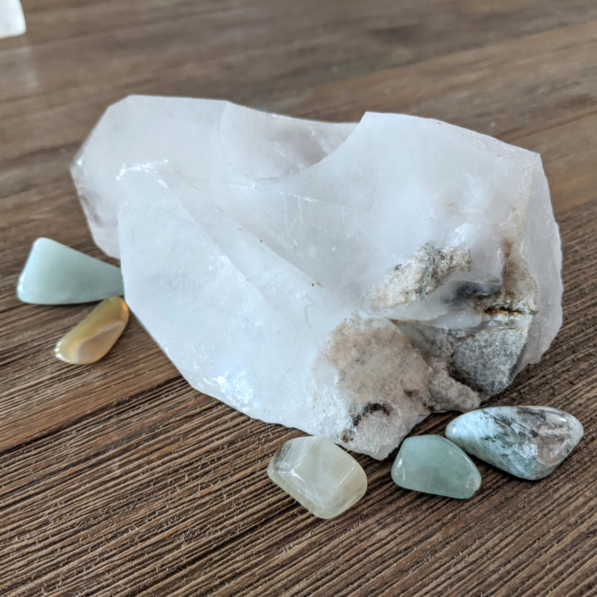 Quartz is a versatile crystal. It clears negative energy and blockages. It raises the spiritual awareness of any who carry it or work with it, stimulating all of the chakras. It magnifies energy, including the energy of other stones. If one wears it or carries it with other stones, their energy will be amplified. Quartz also magnifies the energy of intention. When one meditates with it while focusing on an intention, the crystal will magnify the energy of this intention.