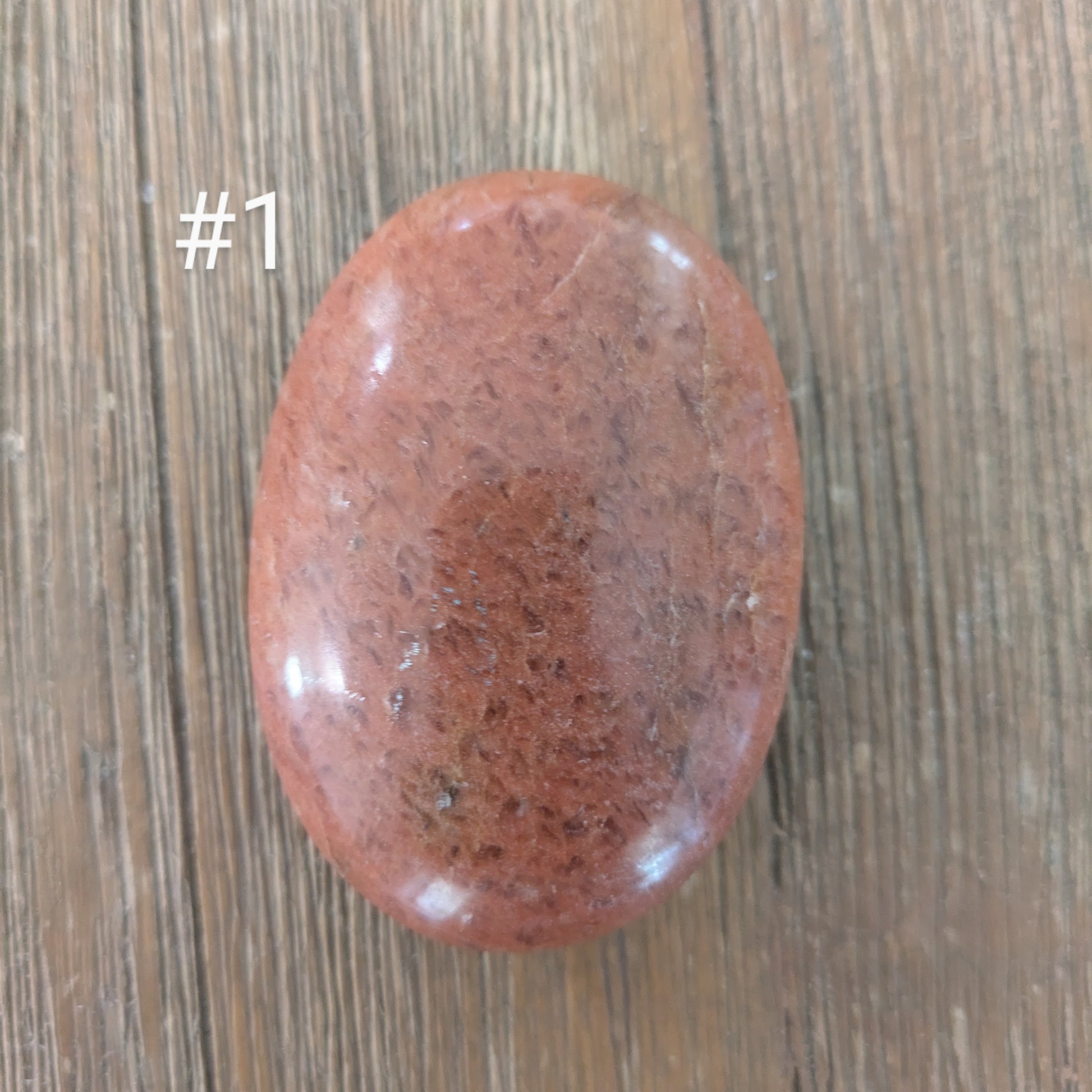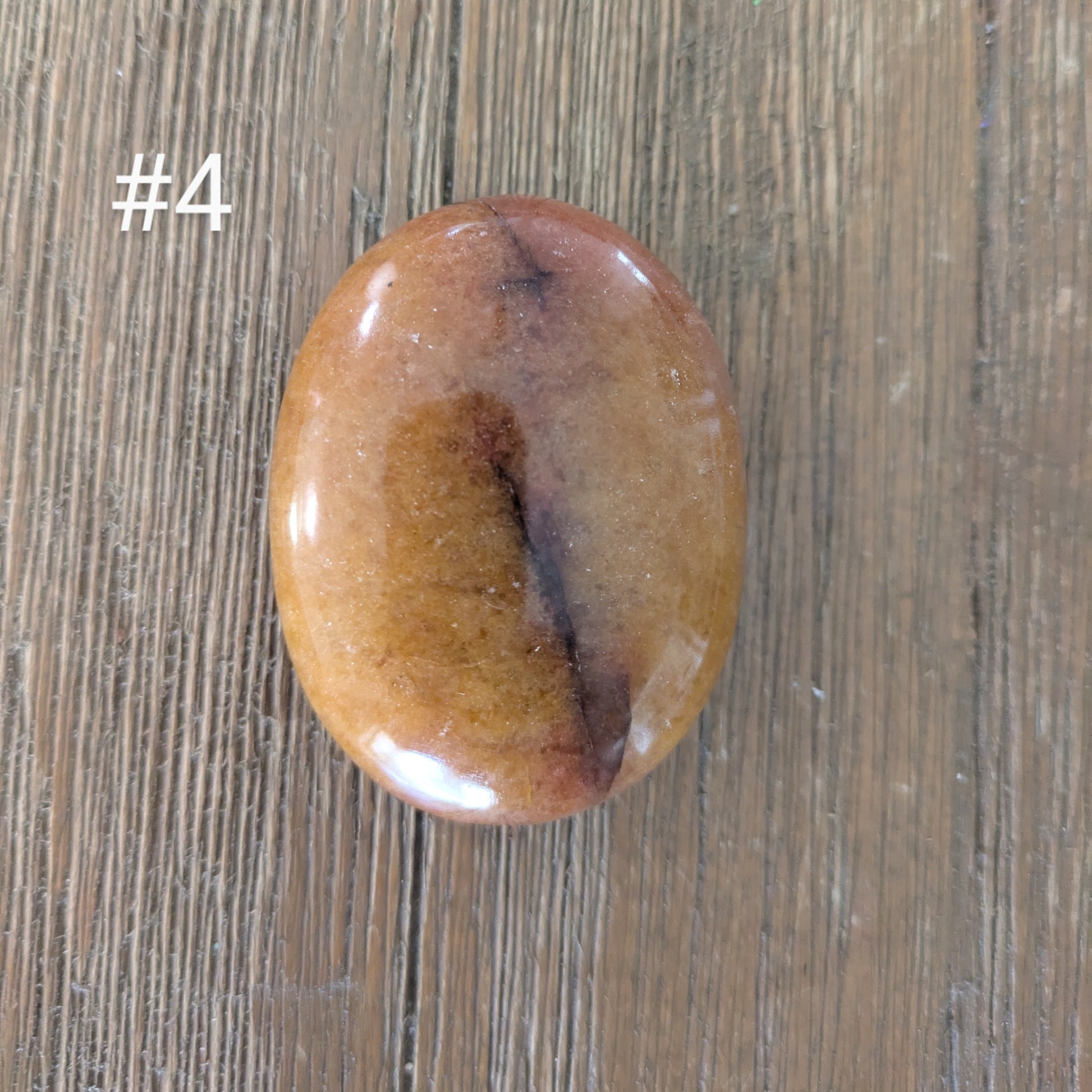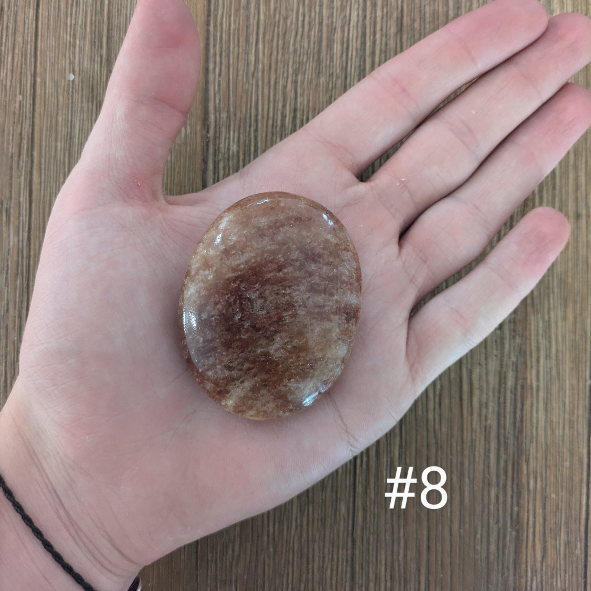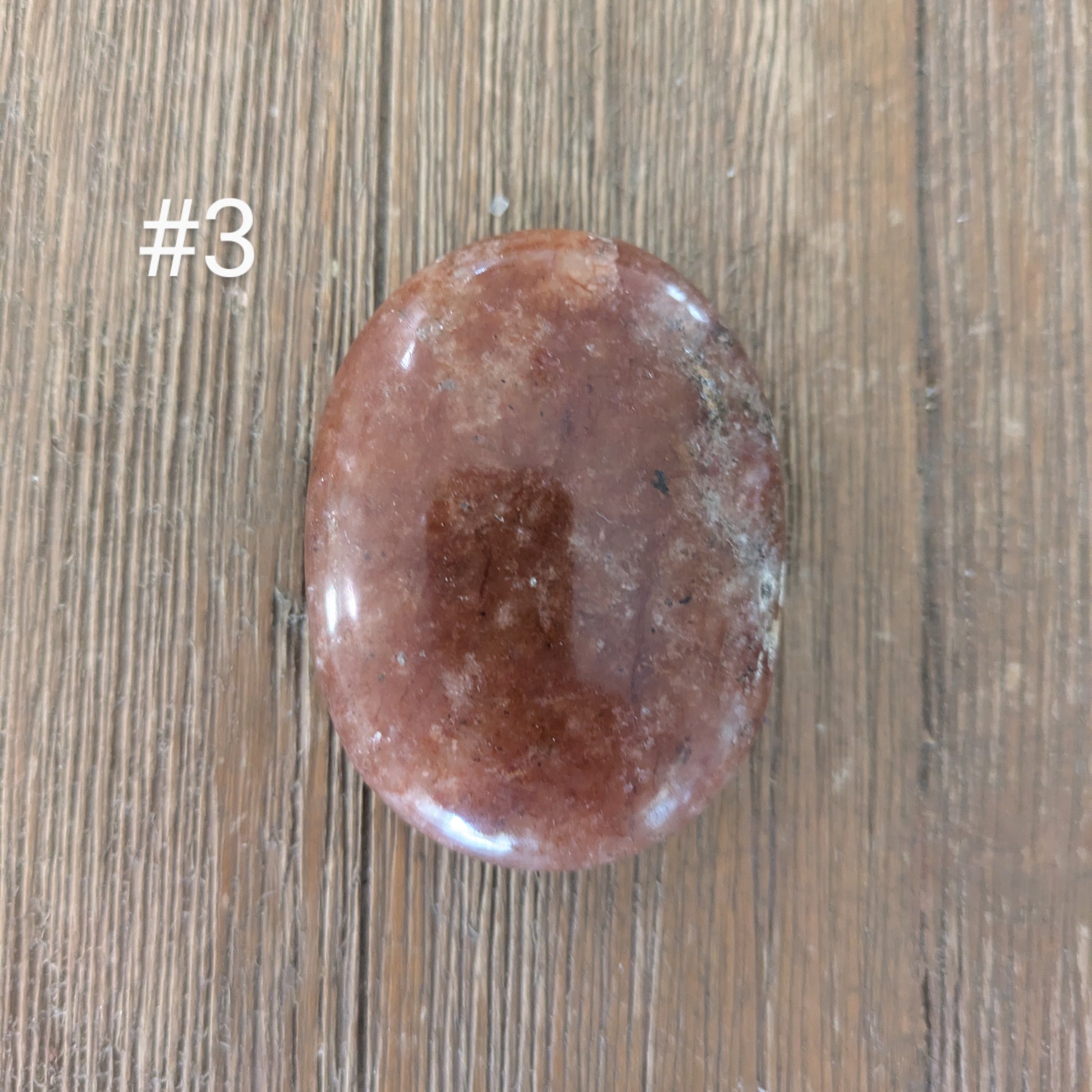 These flat, polished stones fit snugly in the palm. They are wonderful as a grounding tool, as a small decorative element, or to hold while working. Each stone is unique - choose your own stone!