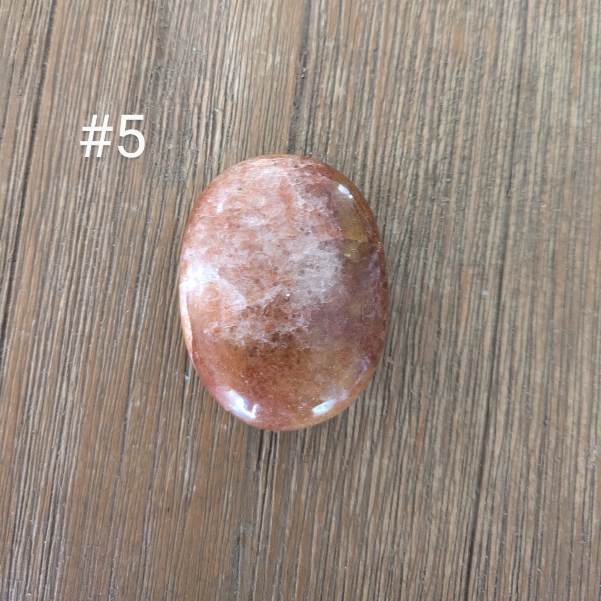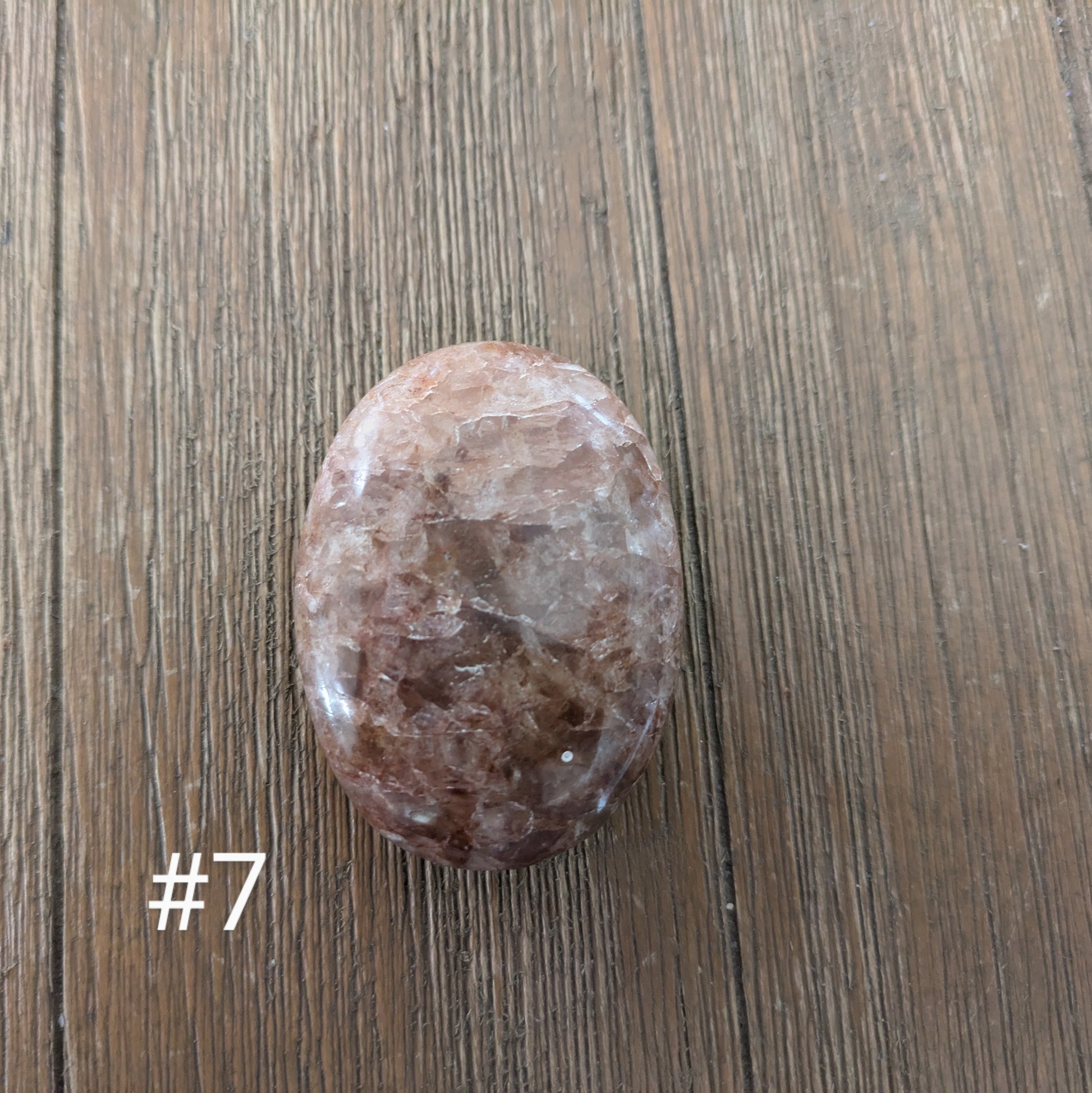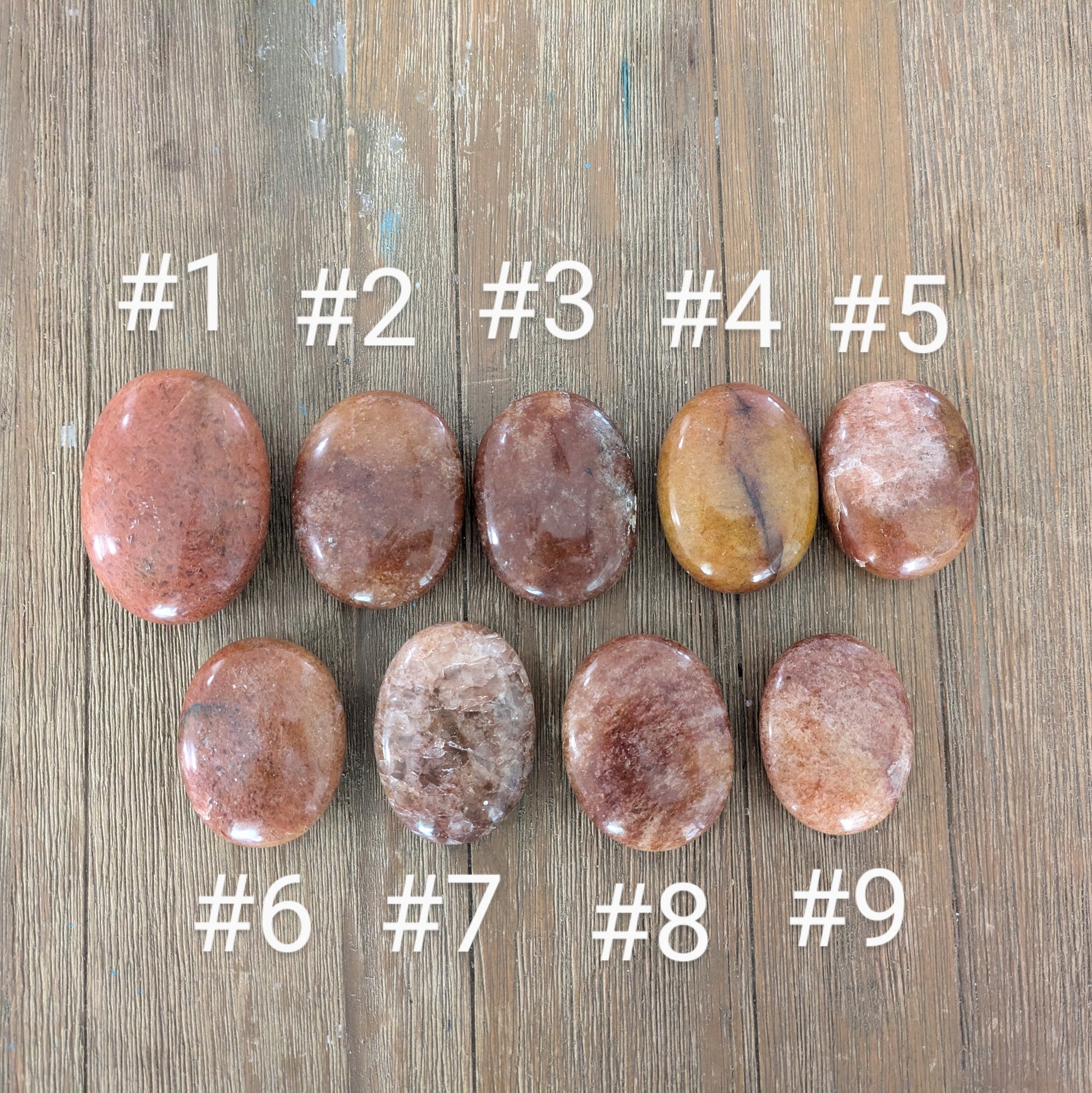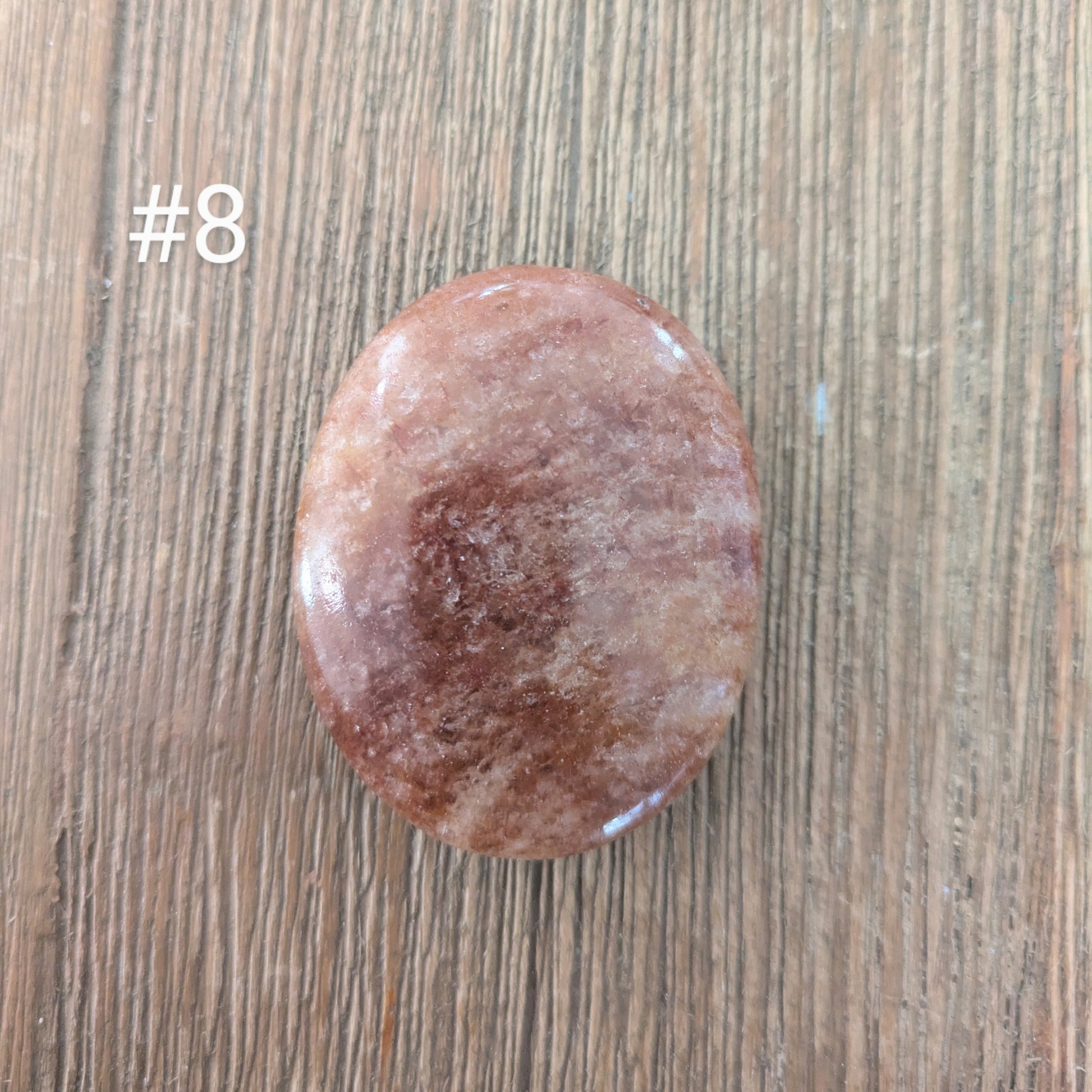 These flat, polished stones fit snugly in the palm. They are wonderful as a grounding tool, as a small decorative element, or to hold while working. Each stone is unique - choose your own stone!
