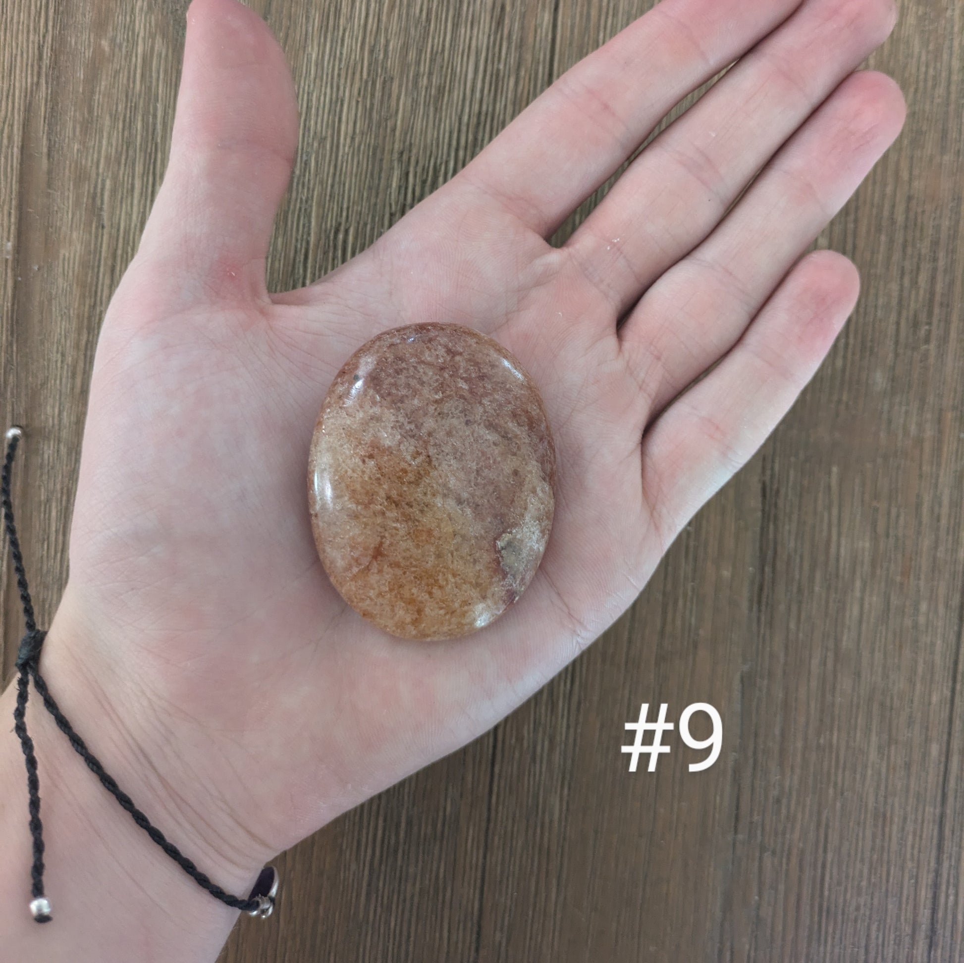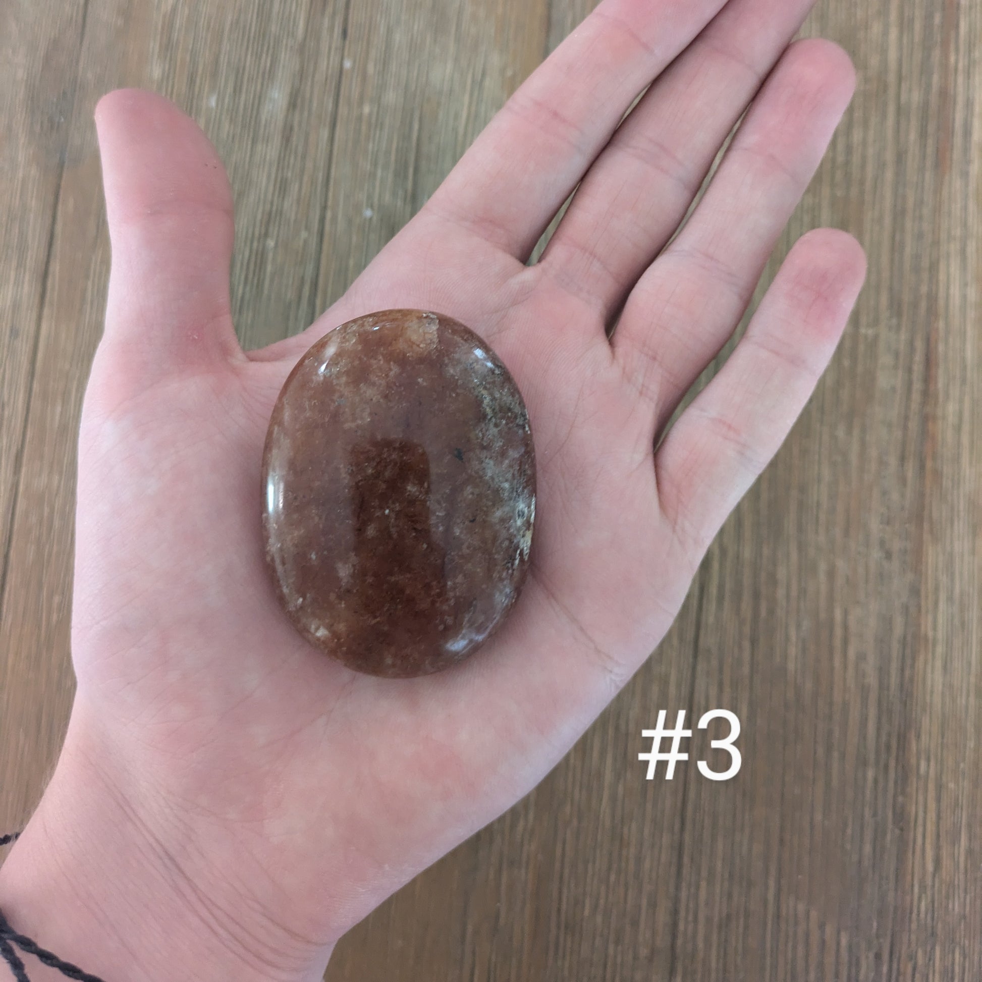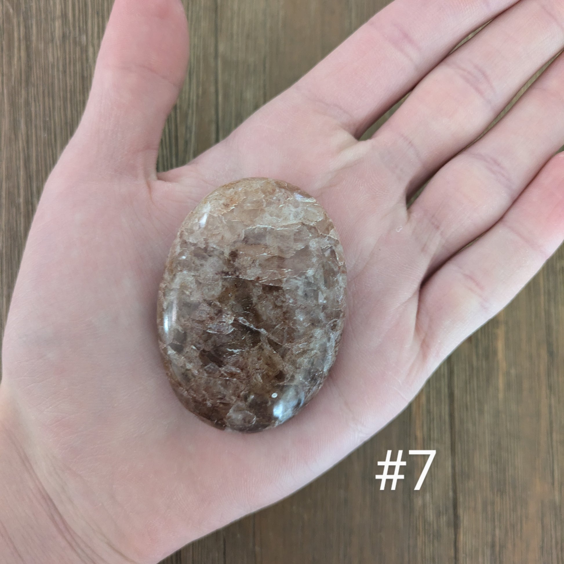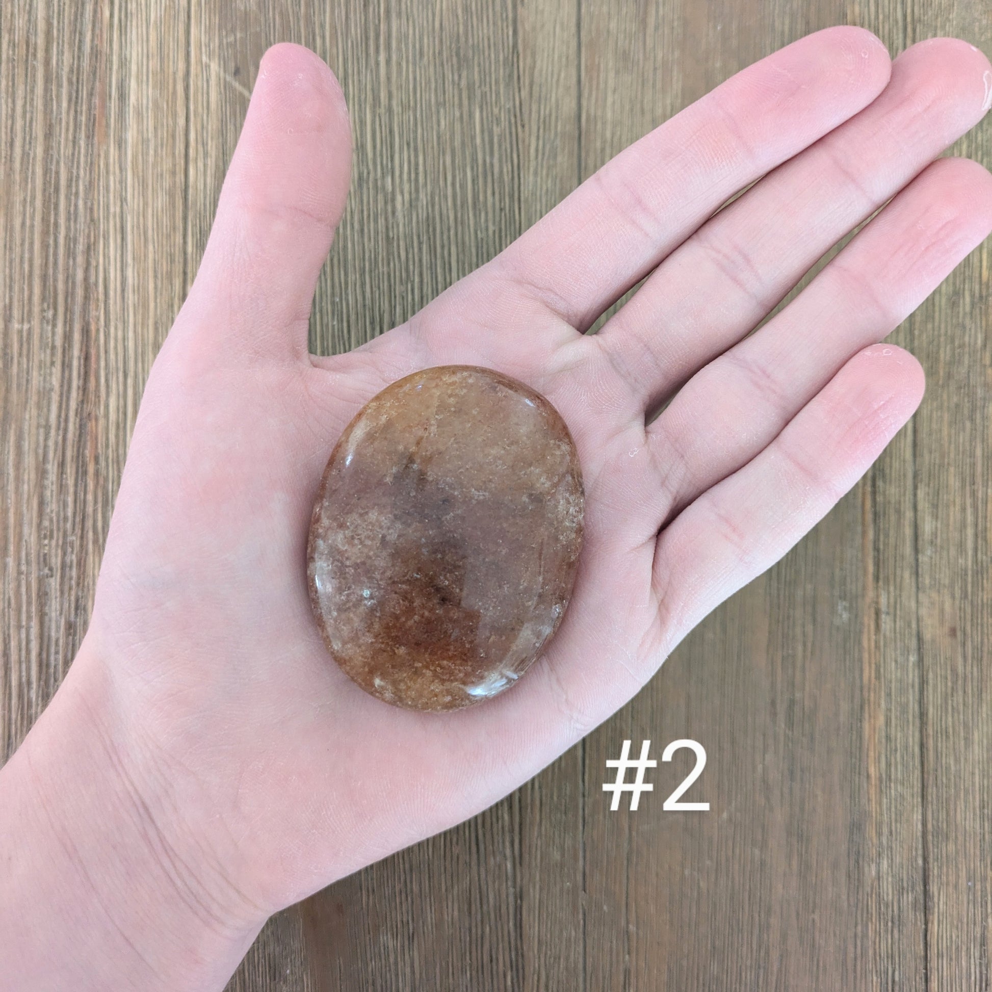 These flat, polished stones fit snugly in the palm. They are wonderful as a grounding tool, as a small decorative element, or to hold while working. Each stone is unique - choose your own stone!