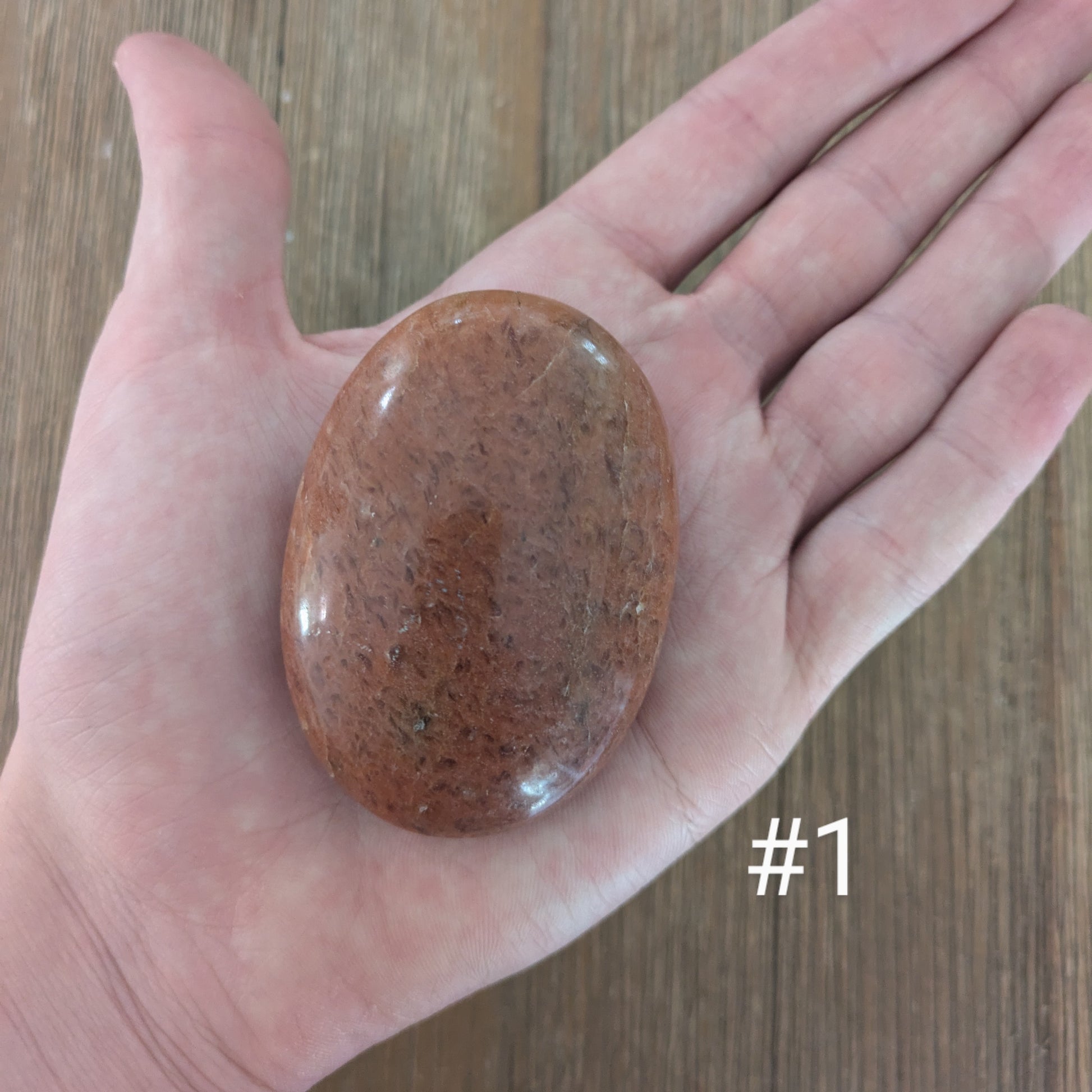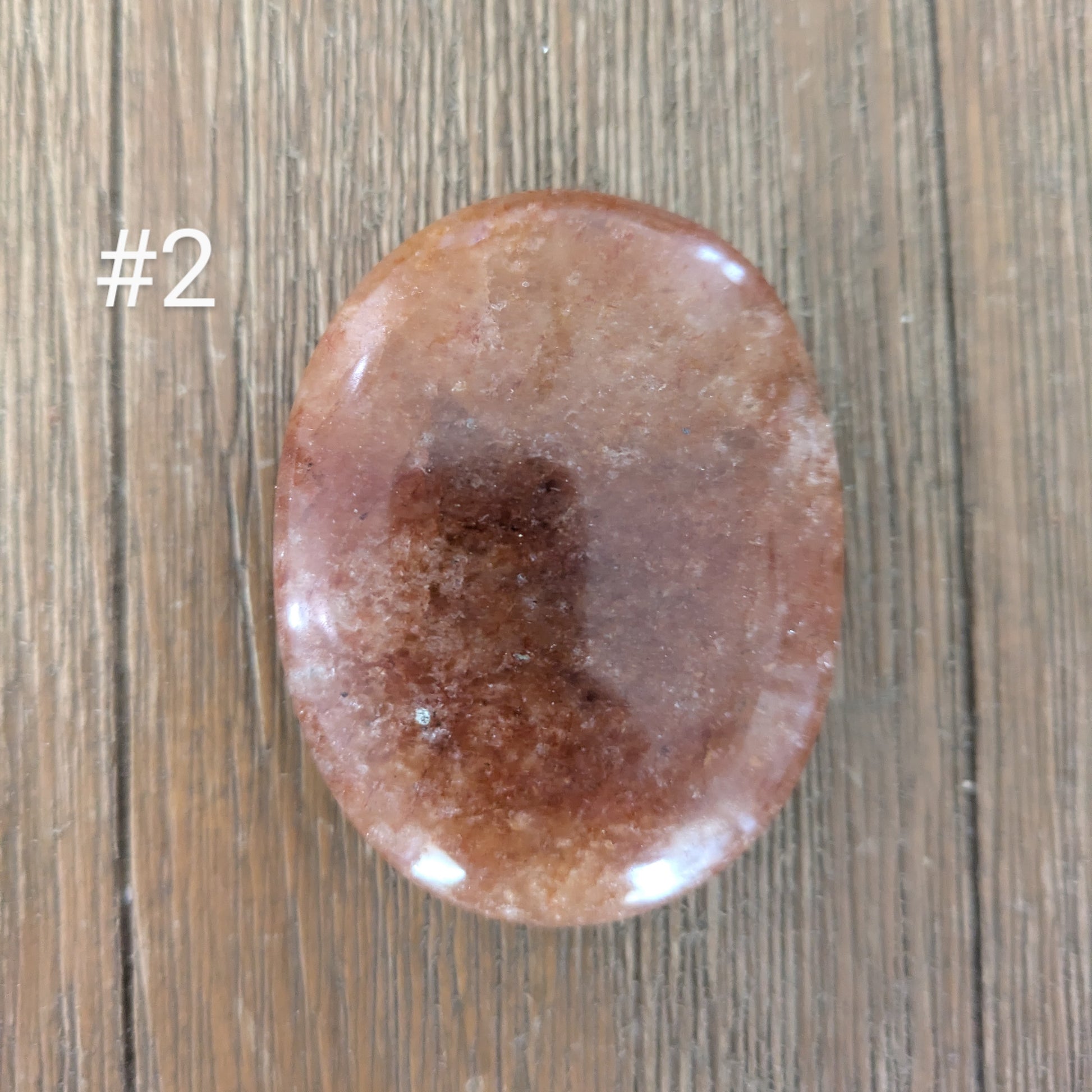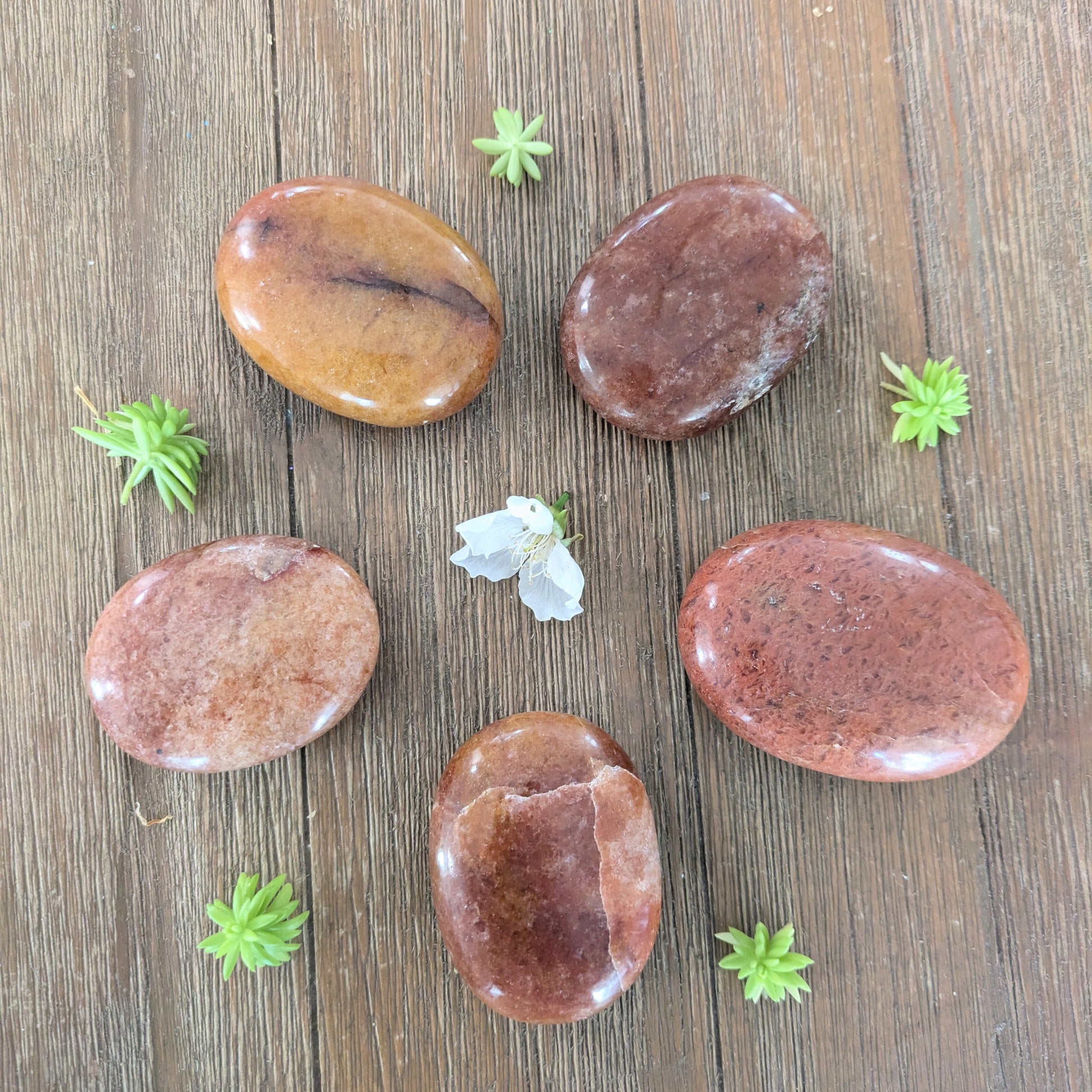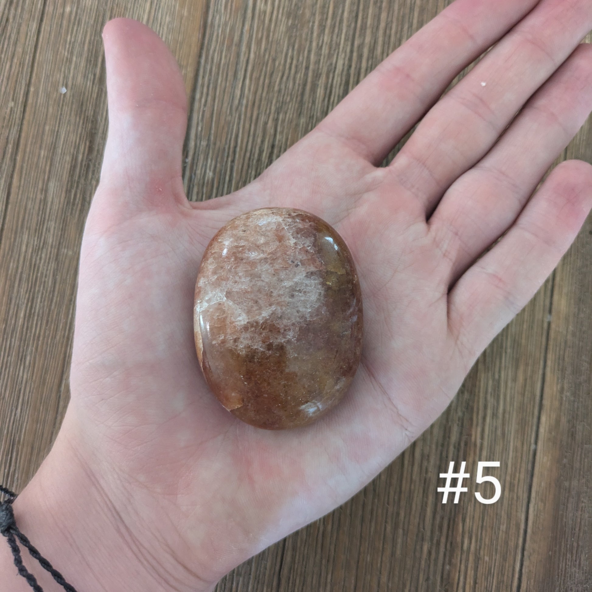 These flat, polished stones fit snugly in the palm. They are wonderful as a grounding tool, as a small decorative element, or to hold while working. Each stone is unique - choose your own stone!