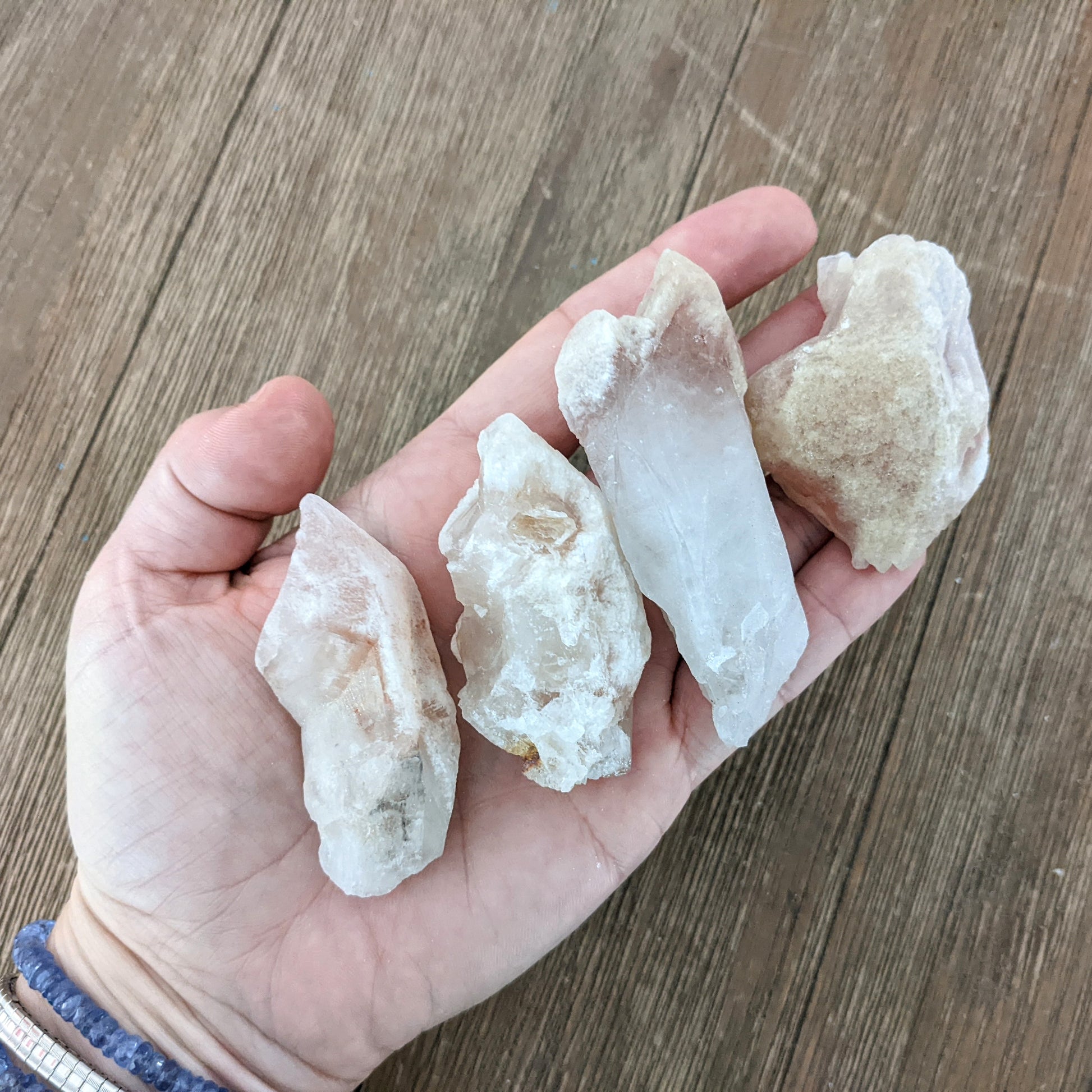 Dreamsicle lemurians are lemurian crystals that are surrounded in crystallized sand. The coating adds a dreamy and expansive layer to the already high vibe crystal!
