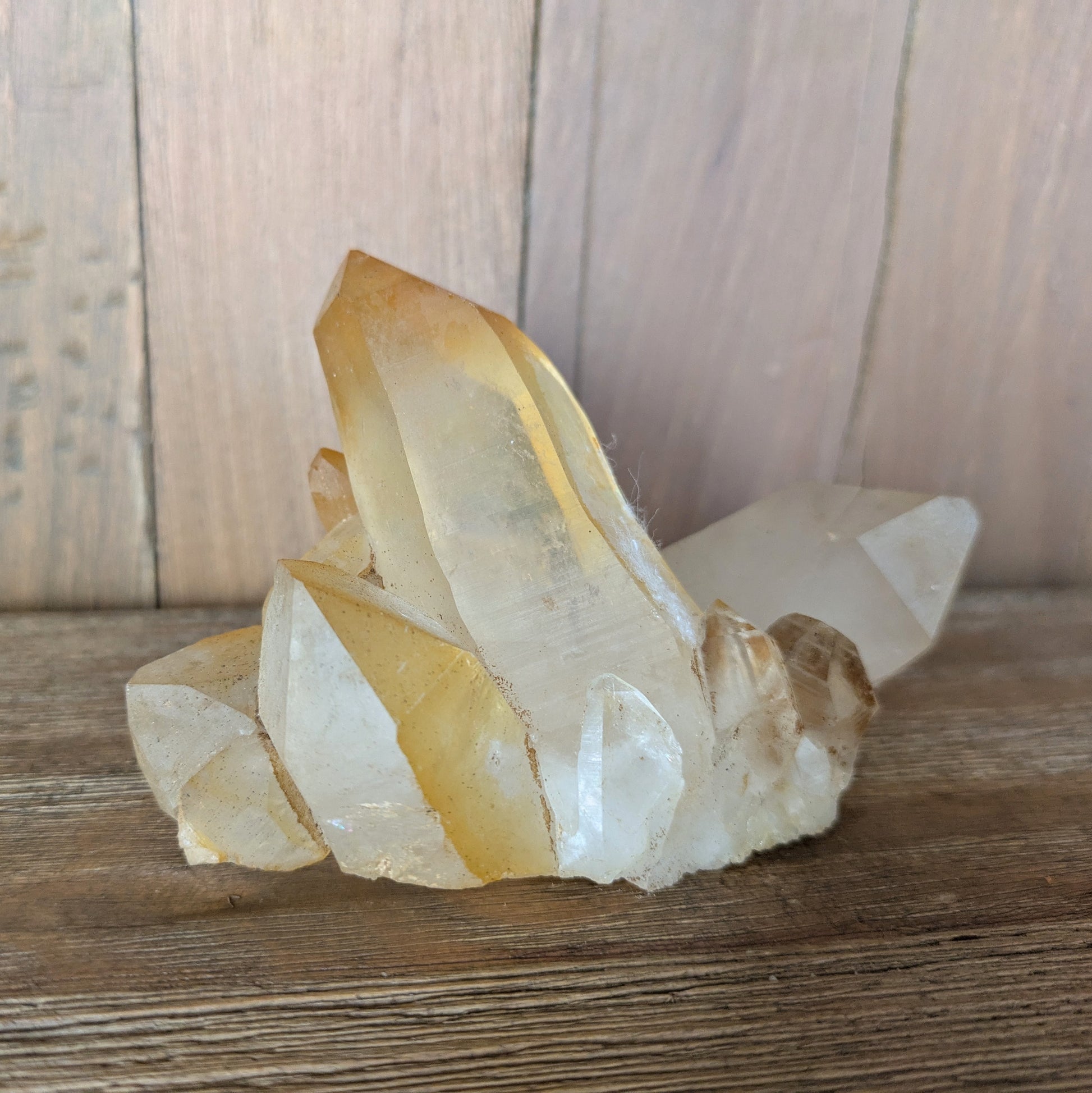 As a quartz, this is a clearing and uplifting stone. It can be programmed with an intention and will hold that intention until cleared. The elements responsible for the tangerine coating enhance the crystal by adding the properties of motivation, joy, creativity, and overall well-being. This is a happy quartz!